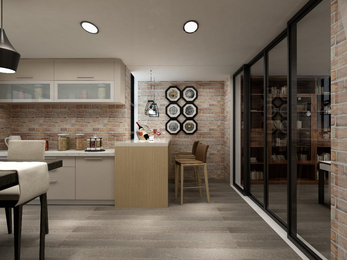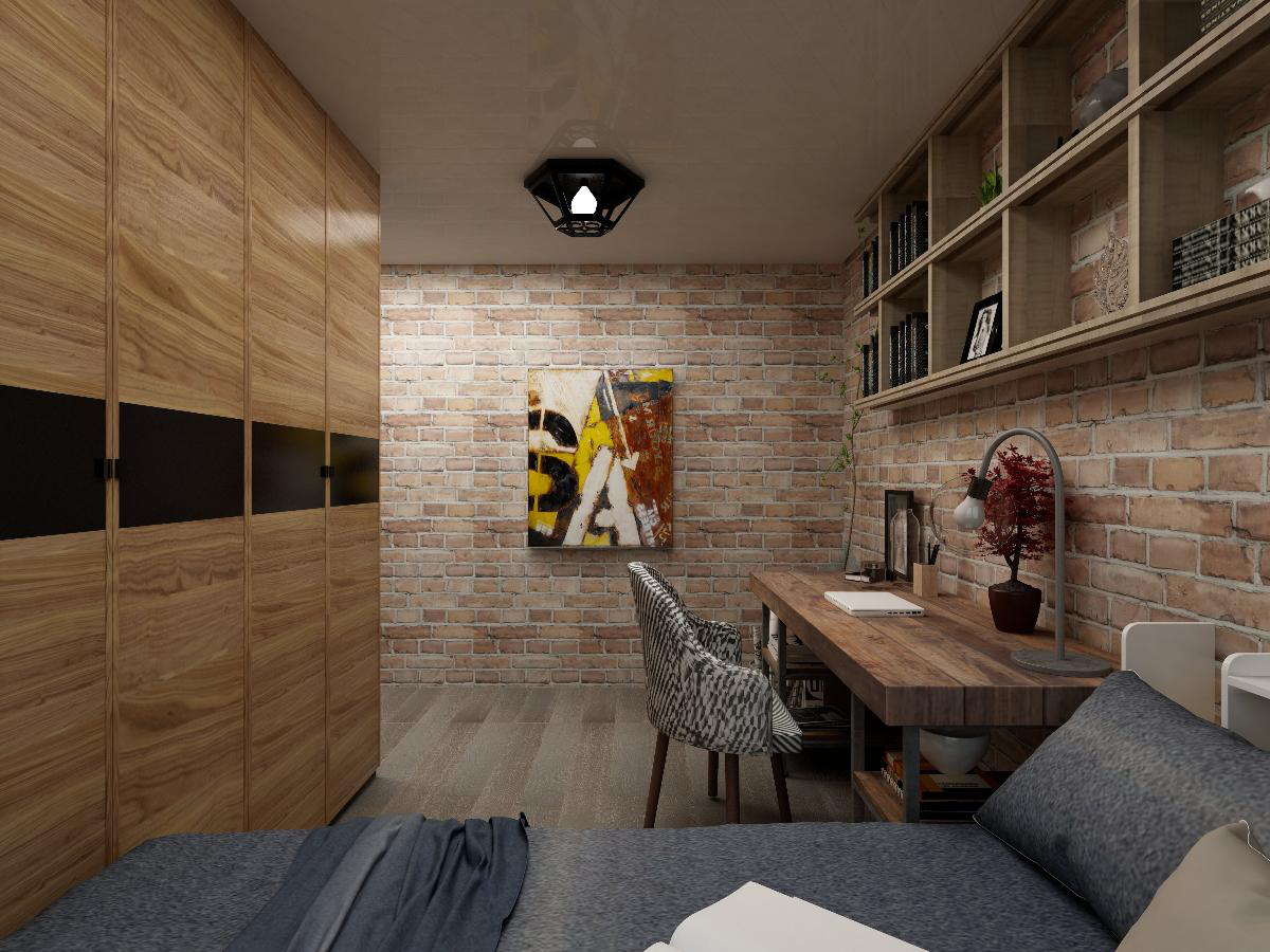 本案例是現代工業風,粗糙的磚墻、灰暗的水泥、和溫馨的原木飾面,這些看似老舊的既有元素,都成了空間中的獨特魅力。
